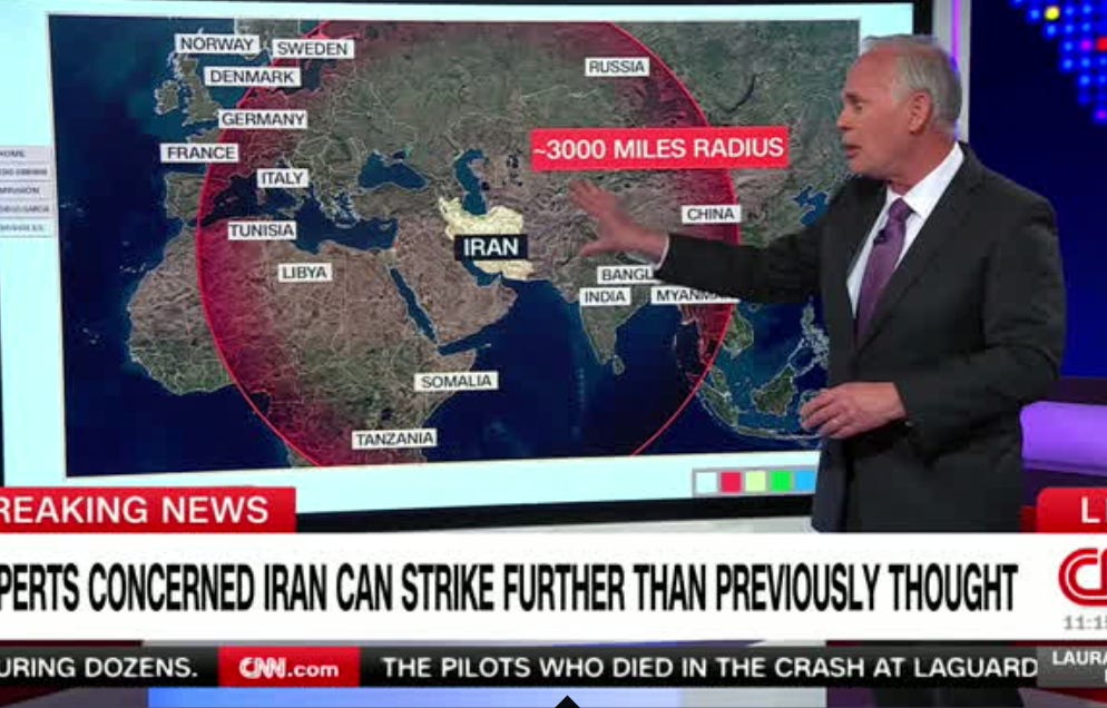With big, scary maps showing London and Paris as potential targets, panic is sown with zero skepticism or critical reporting.