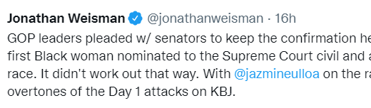 New Yorker, 3/21/22: “Voices from the G.O.P.’s far-right wing appeared determined to use Judge Ketanji Brown Jackson’s hearing for both their pursuits in the culture war and their own political ambitions.”